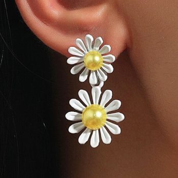Fleepmart Daisy Earring Women Kawaii Woman Earring Fashion Design Shiny Cute Korean Trendy Simplicity Silver Color Zinc Alloy Kolczyki