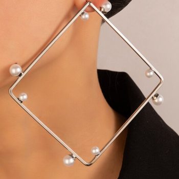 Fleepmart INS Fashion Big Square Drop Earrings for Women Luxury Pearl Stone Geometry Alloy Metak Party Jewelry
