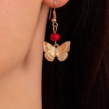 Fleepmart Pretty Butterfly Drop Earrings Red Beaded New Fashion Alloy Metal Geoemtry Dangle Earrings for Women Jewelry