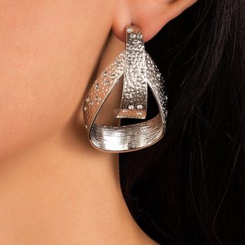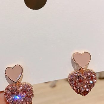 Fleepmart Exquisite Rhinestone Big Heart Stud Earrings Fashion Hollow Metal Heart Earrings Women’s Elegant Party Jewelry