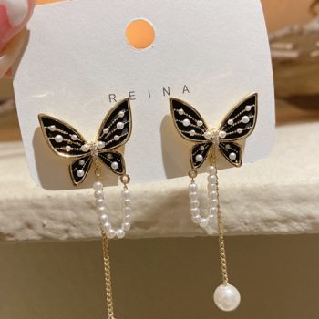 Fleepmart Simulation Butterfly Pearl Long Earrings For Women Heart Star Rhinestone Wedding Pendant Tassel Earrings Fashion Jewelry