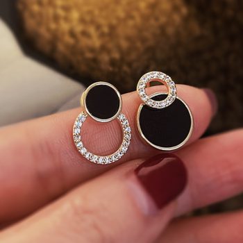 Fleepmart Diamond Studded Circle Earrings For Women Girls Small Simple Black Color New Temperament Fashion Earring Crystal Jewelry