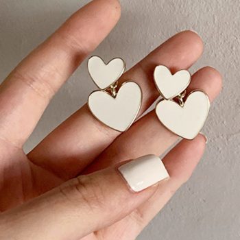 Fleepmart 2022 Fashion Heart Earrings For Women White Color Temperament Korean Love Dangle Stud Earring Female Cute Jewelry