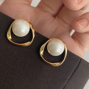 Fleepmart Pearl Earring for Women Gold Color Round Stud Earrings Christmas gift Irregular Design Unusual Earrings