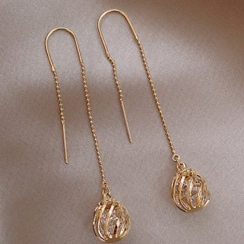 Fleepmart Women Korean Long tassels metal hollow ball design fine crystal Drop earrings 2021 Classic style New earrings Jewelry