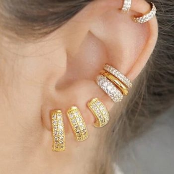 Fleepmart 2PC Fashion Gold Silver Color Crystal Zirconia Piercing Earrings For Women Small Circle Pendant Ear Studs Earring Korean Jewelry