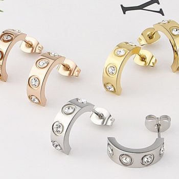 Fleepmart Fashion New Stainless Steel C-shaped Four Crystal Earrings Unisex Earrings Love Gift Party Wholesale Jewelry