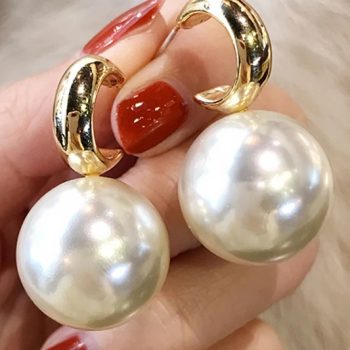 Fleepmart Fashion Korean Oversized Pearl Drop Earrings for Women Bohemian Golden Round Pearl Wedding Earrings Jewelry