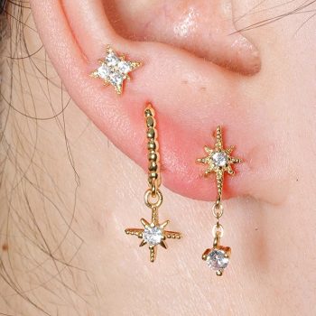 Fleepmart 3PCS Gold Color Star Earrings Set for Women Zircon Pendant Stainless Steel Hoop Earring Trend Wedding Jewelry pendientes mujer