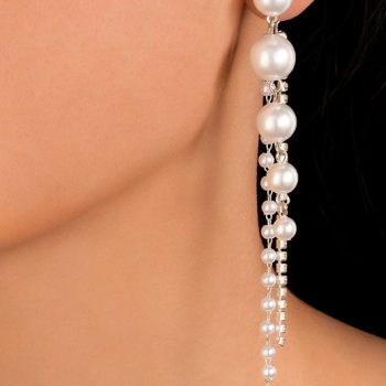 Fleepmart Fashion Long Chain Pearl Stone Drop Earrings Women Charms Gold Color Alloy Metal Party Jewelry Accessories сережки