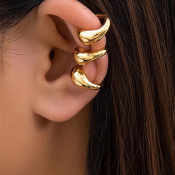 Fleepmart 1Pcs Punk Water Drop Half Empty Clip Earring Gothic C Shape Ear Cuff Stud Thick Earclips For Women Party Jewelry Gifts