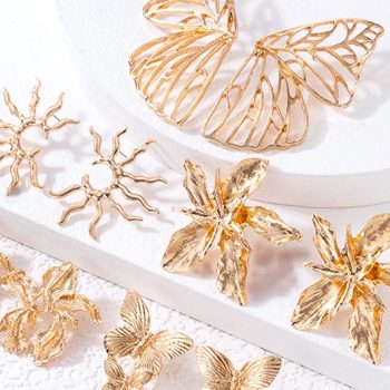Fleepmart Pretty Big Flowers Drop Earrings for Women New Trendy Butterfly Alloy Metal Statement Earrings Jewelry Pendientes