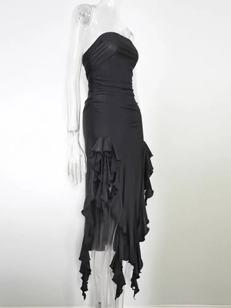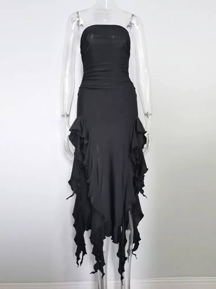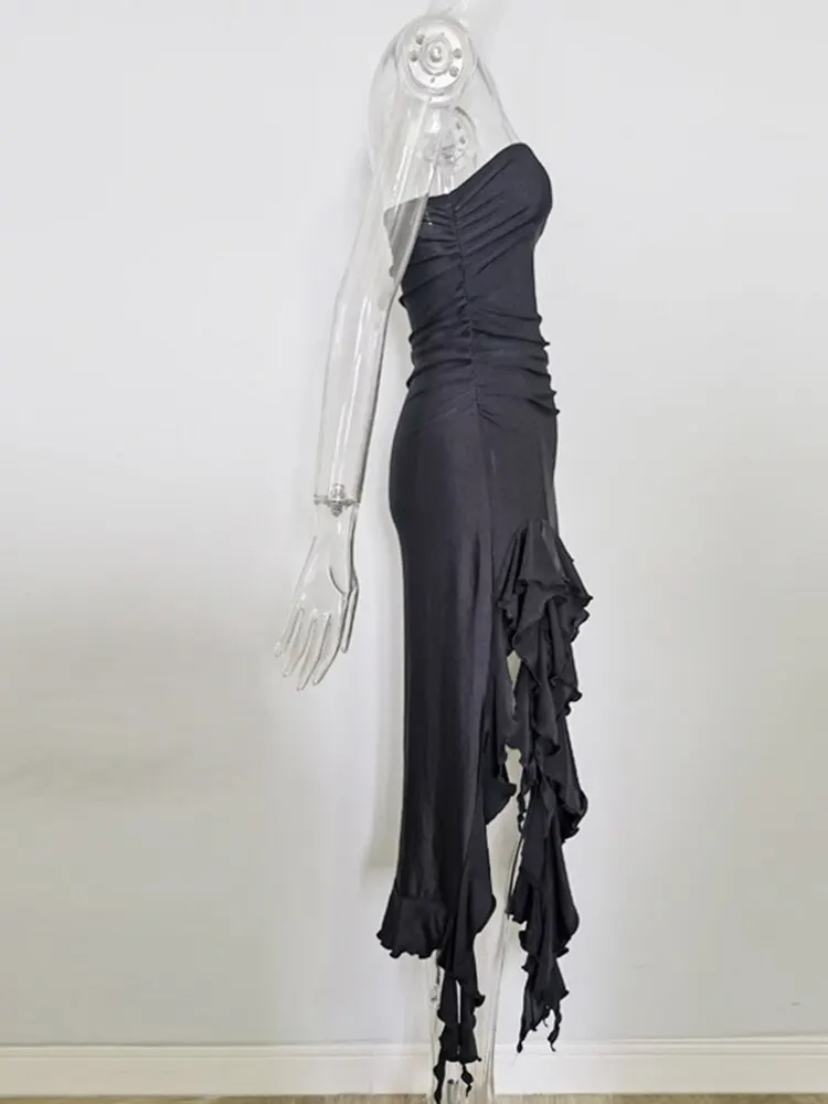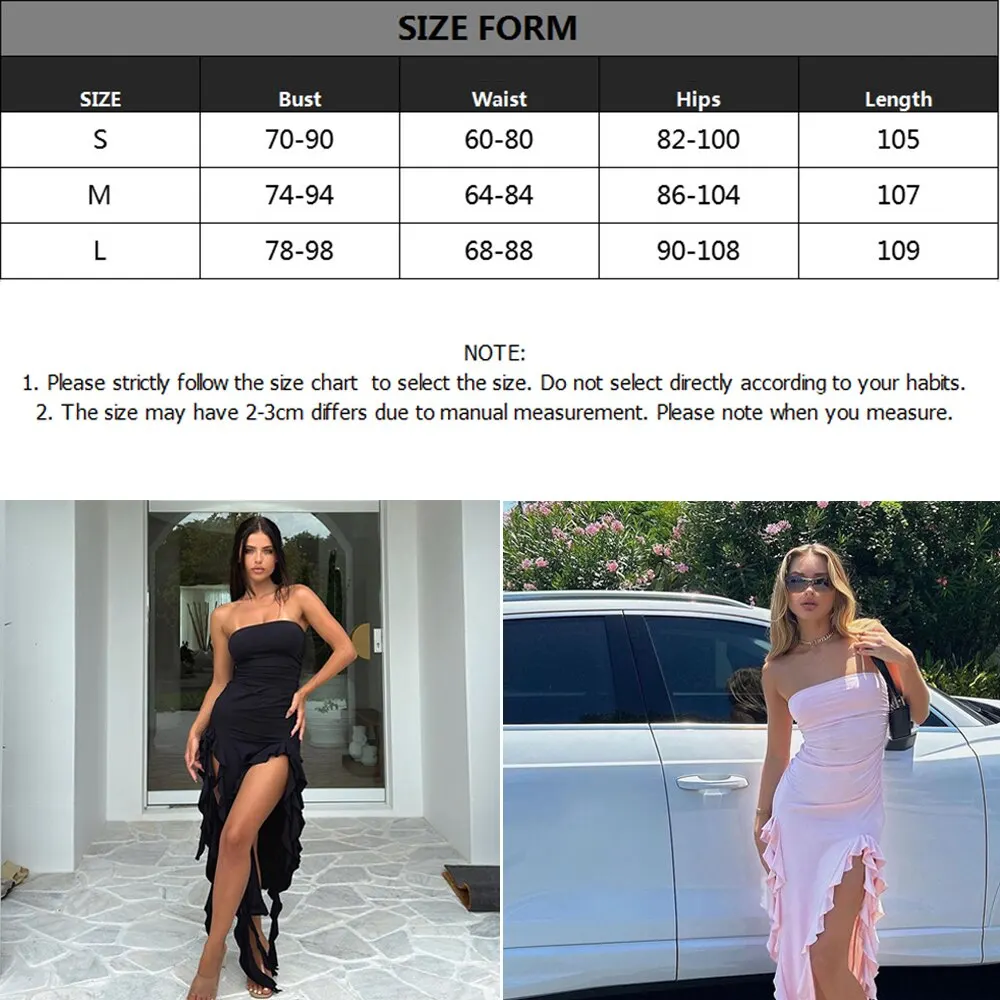 Fleepmart Elegant Ruffles Maxi Dress Summer Sexy Straps Sleeveless Ruched Evening Party Dresses for Women Backless Club Outfits