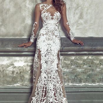 Fleepmart 2022 Summer Vintage Women Sexy Maxi Dress Long Sleeve Embroidery See Through White Lace Long Beach Dress