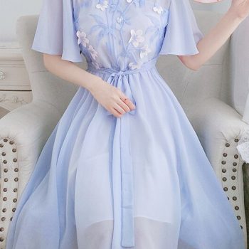 Fleepmart Retro Hanfu Robe Vintage Femme 2020 Summer Dresses Chiffon Dress Short Sleeve Embroidered Casual Dress Chinese Style