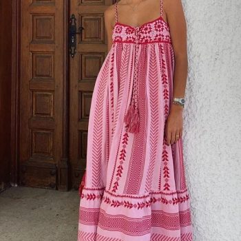 Fleepmart Fashion Embroidery Pleat Suspender Dress Women Vintage Sleeveless Midi Dresses 2023 Summer Lady Vacation Beach Bohe Vestidos