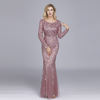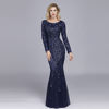 Fleepmart Evening Dresses Mermaid O Neck Full Sleeve Lace Appliques Tulle Long Party Gown Robe Soiree Elegant Formal Dress
