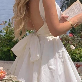 Fleepmart Sexy backless bow black white summer dress women elegant birthday party dresses 2025 woman prom evening short dresses vestidos