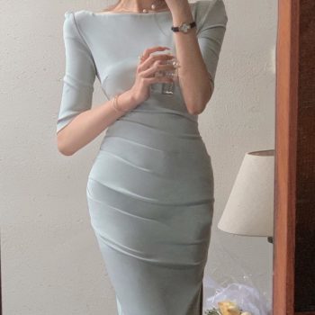 Fleepmart 2025 Sexy Solid Color Off Shoulder Corset Women’s Fashionable Simple Dress Temperament Elegant Birthday Party Evening Club Gowns