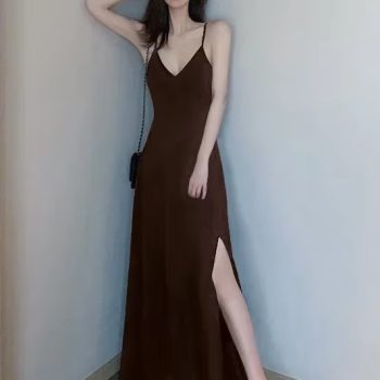 Fleepmart Satin Strapless Thigh High Split Maxi Dress for Women Solid Off-shoulder Backless Sleeveless Bodycon Fashion Long Dress