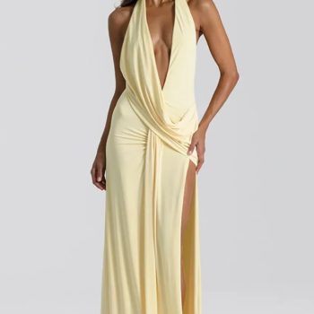 Fleepmart Halter Deep V Neck Backless Sexy Maxi Dress Women Gown Fashion Irregular Sleeveless Thigh High Split Club Party Dresses