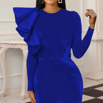 Fleepmart Women Long Sleeve Dress Bodycon Velvet Christmas Party Home Coming O Neck Ruffles Slim Elegant Evening Event Autumn Winter Gowns
