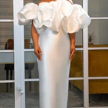 Fleepmart Women White Party Dresses Off Shoulder Ruffles Evening Wedding Guest Event Ladies Autumn Birthday Gowns Large Size Robes