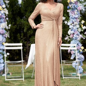 Fleepmart Luxury Floor Length V-Neck Evening Dress 2024 Women Elegant Party Maxi Dress Sequin Long Sleeves Prom Cocktail Dress