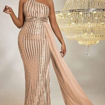 Fleepmart Women Plus Size Maxi Dresses Sequin dress with diagonal neckline sleeveless bodyfitting Vestidos de Novia fishtail dress