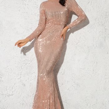 fleepmart Elegant O Neck Long Sleeve Sequin Maxi Dress Floor Length Stretchy Bodycon Party Dress Gold Green Burgundy Red