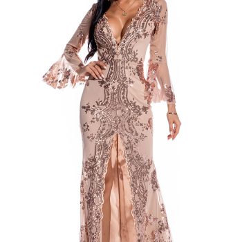 Fleepmart Long Sleeve Dress White Sequin Evening Dress Elegant Vneck Party Long Prom Dress