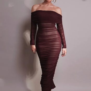 Fleepmart Off-shoulder Long Sleeve Sexy Maxi Dress For Women Autumn New Strapless Backless Bodycon Party Long Dress