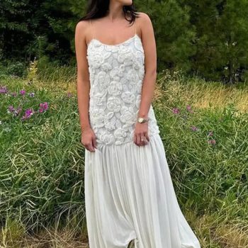 Fleepmart Elegant 3D Floral Sling Long Women Retro Backless Pleated Maxi Evening Spring Chic Street Party