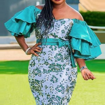 Fleepmart Shoulder Printed Dresses Green Ruffles Sleeve Bodycon Patchwork African Gowns Evening Cocktail Clubwear Party Outfits