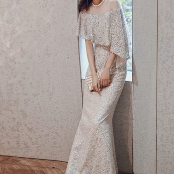 Fleepmart Robe de soiree Elegant Boat Neck Long Evening Dress Sequined A Line Off The Shoulder Vestido De Festa Banquet Party Prom dresses