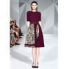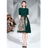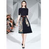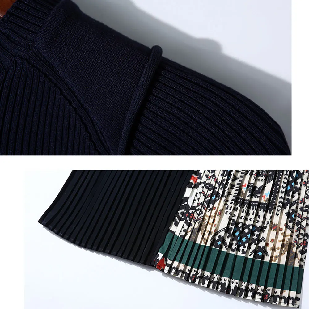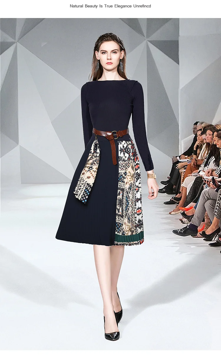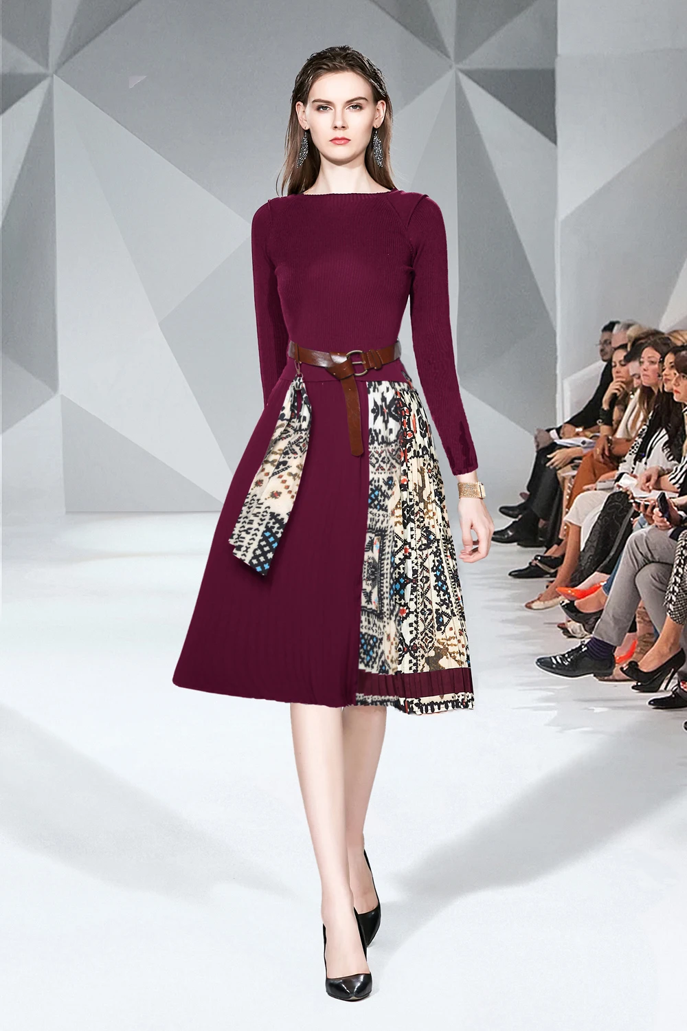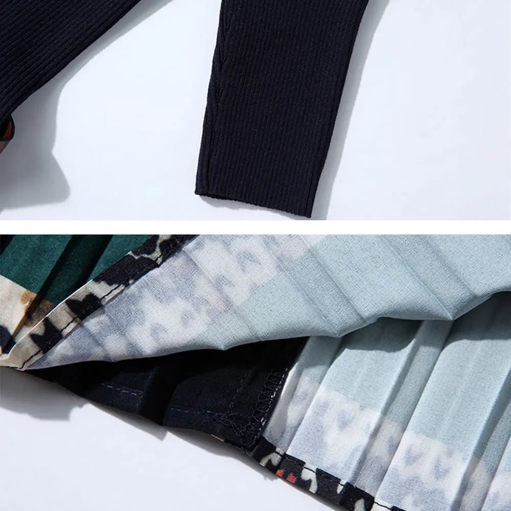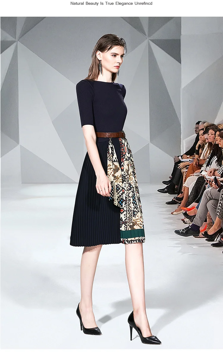 Fleepmart Female Designer Pleated Midi Dress 2022 Runway Knitted Patchwork Floral Print O Neck Short Sleeve Bow Sashes Party Dress