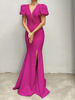 Fkeepmart Short Puff Sleeve V Neck Front Slit Backless Floor Length Summer Evening Party Prom Maxi Dress Gown