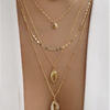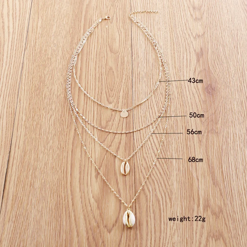 Fleeepmart 4 Pcs/Set Bohemian Charm Necklaces Women Gold Shell Geometric Pendant Multilayer Gold Necklace Beach Fashion Jewelry Accessories