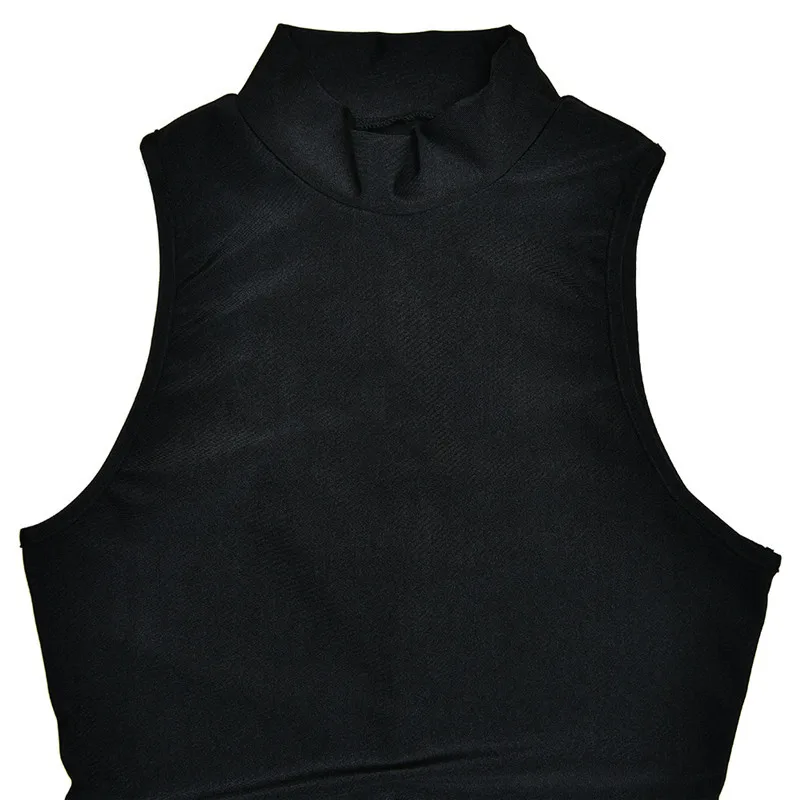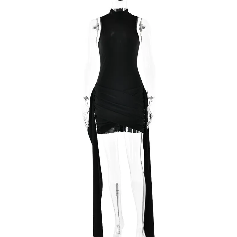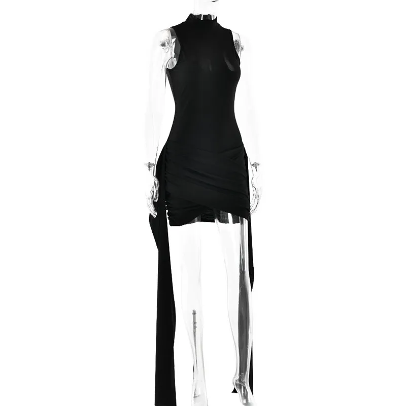 fleepmart Turtleneck Sleeveless Sexy Mini Dress For Women Fashion Irregular Ruched Tank Dress Femme Elegant Club Party Dress