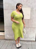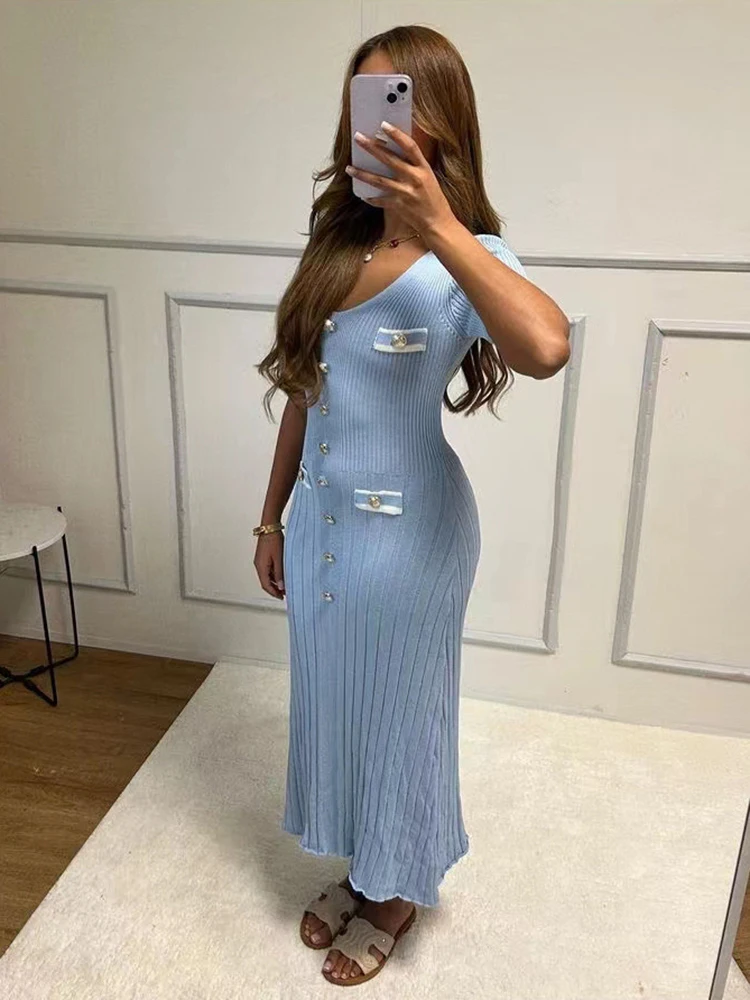 fleepmart Office Lady Elegant Knitted Long Dress Summer Short Sleelve V Neck Single Breasted Bodycon Dresses Women Party Fashion Vestidos
