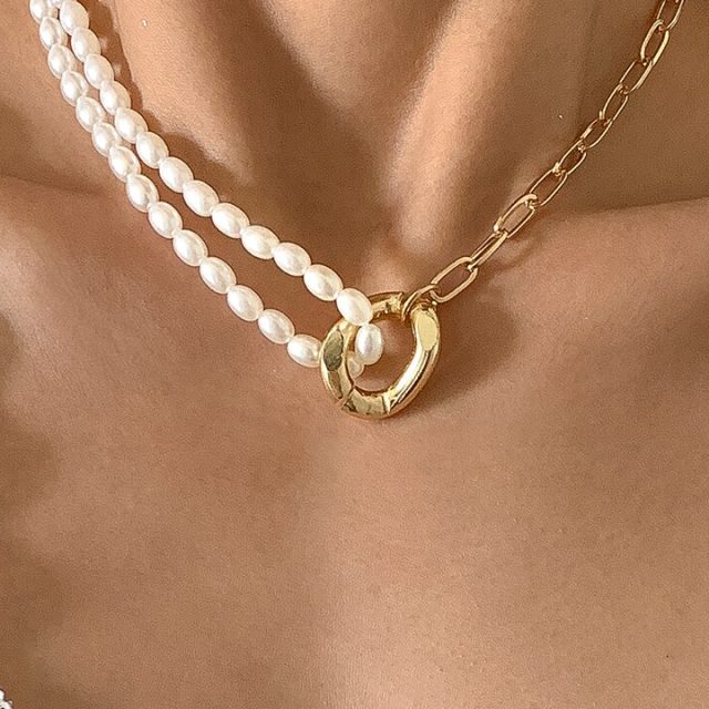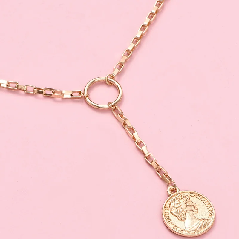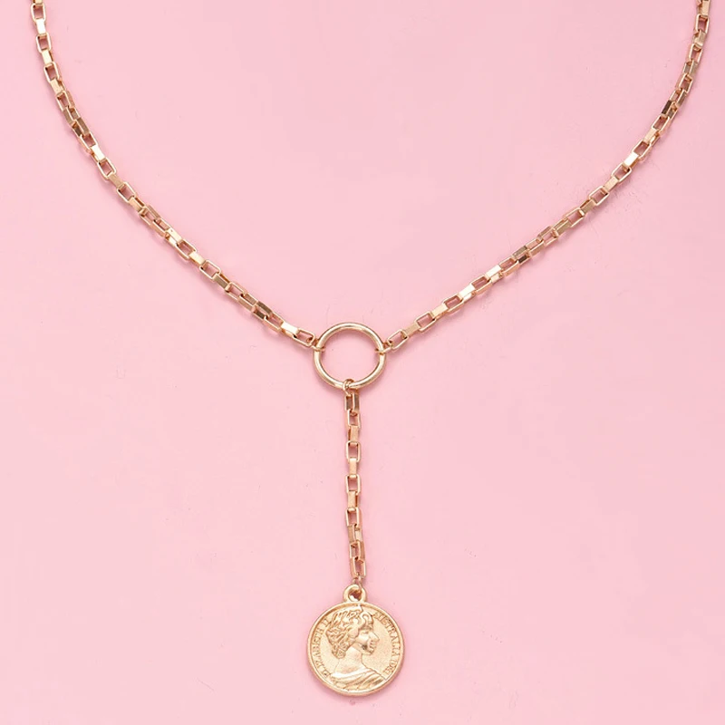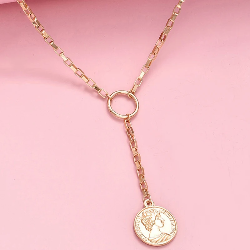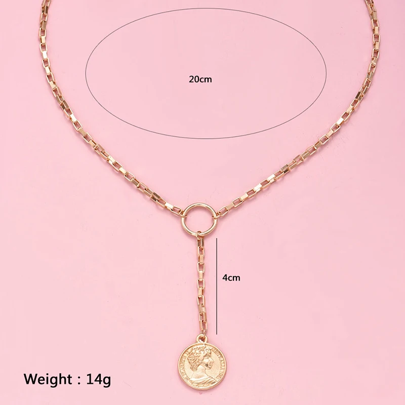 Fleepmart 1 Pcs Women Classic Necklaces Beach Simple Geometric Portrait Pendant Gold Color Clavicle Chain Lady Retro Necklace Jewelry