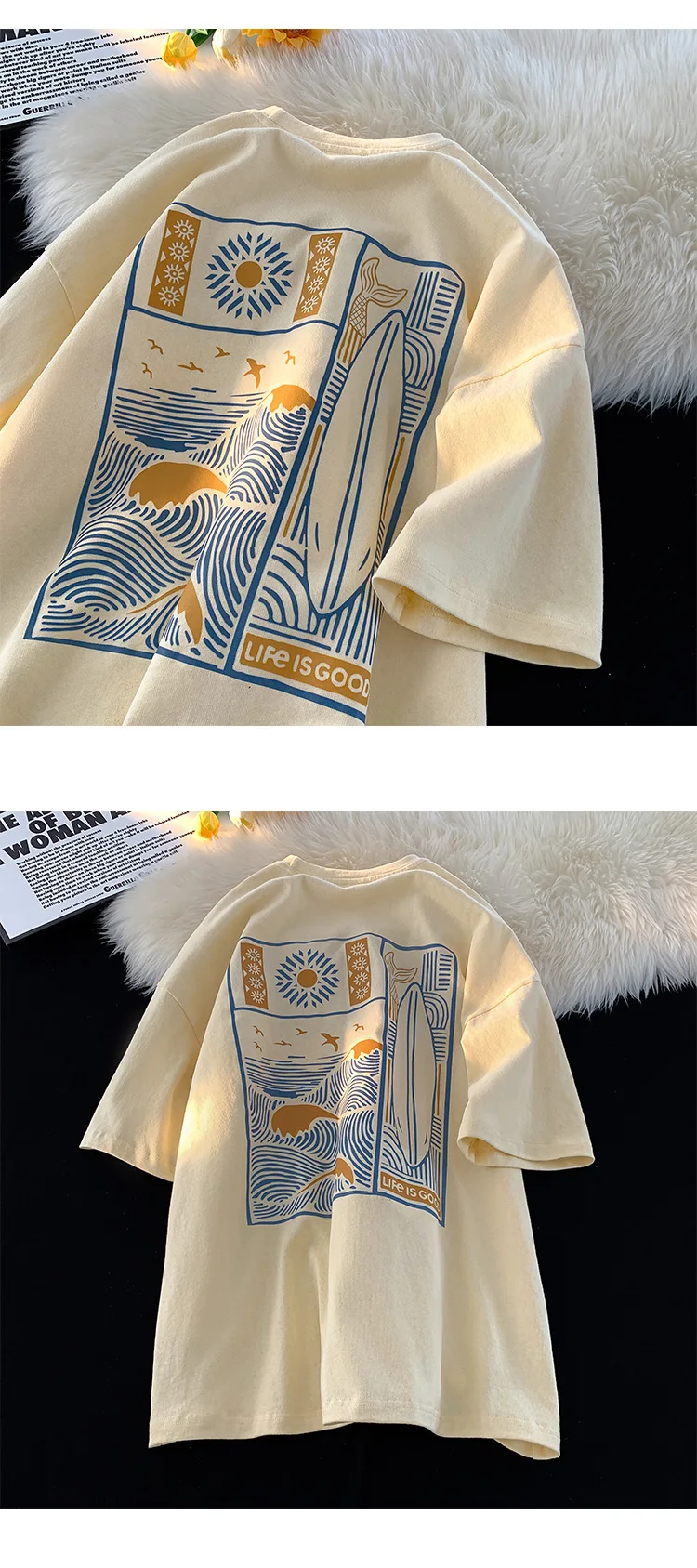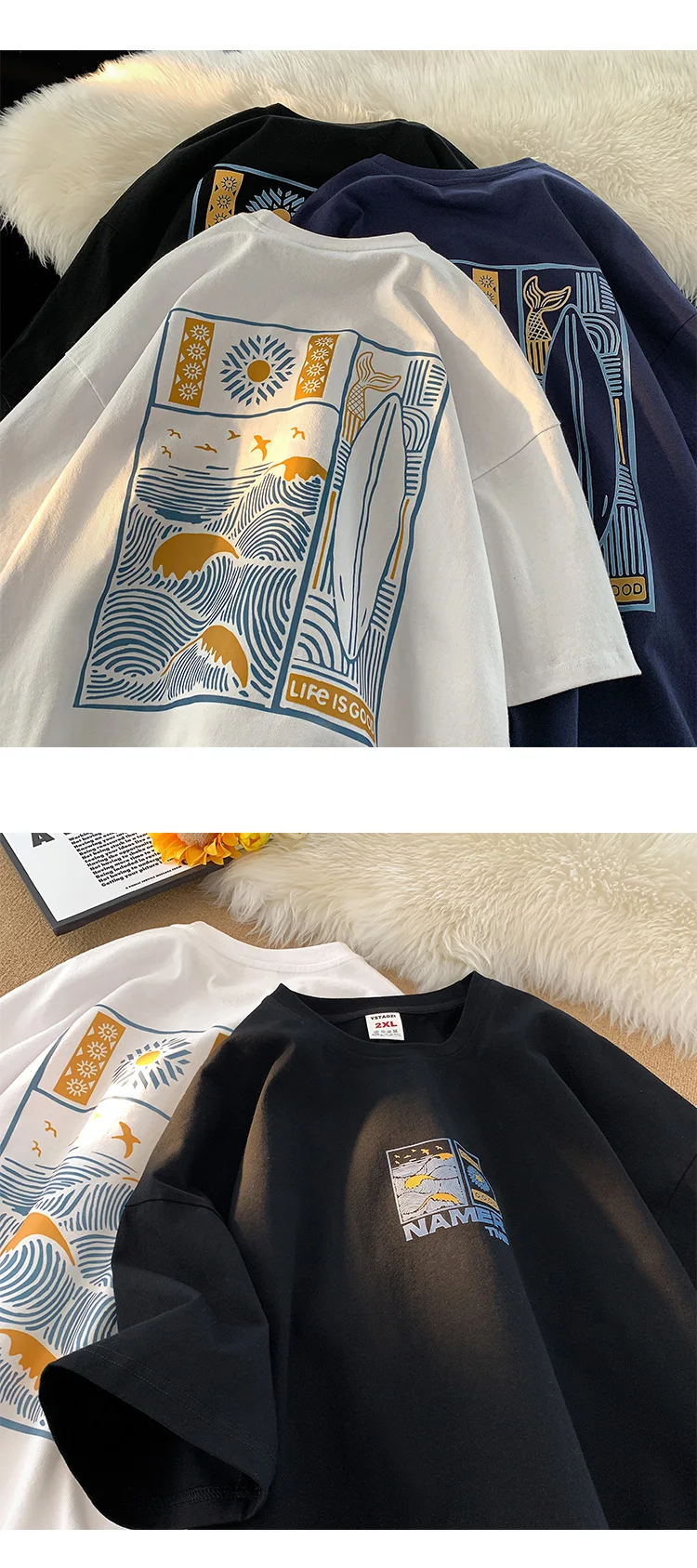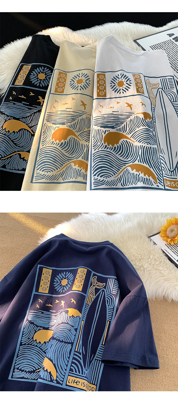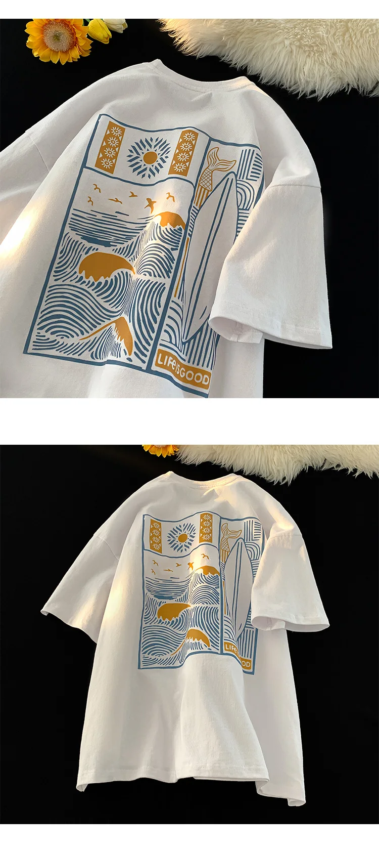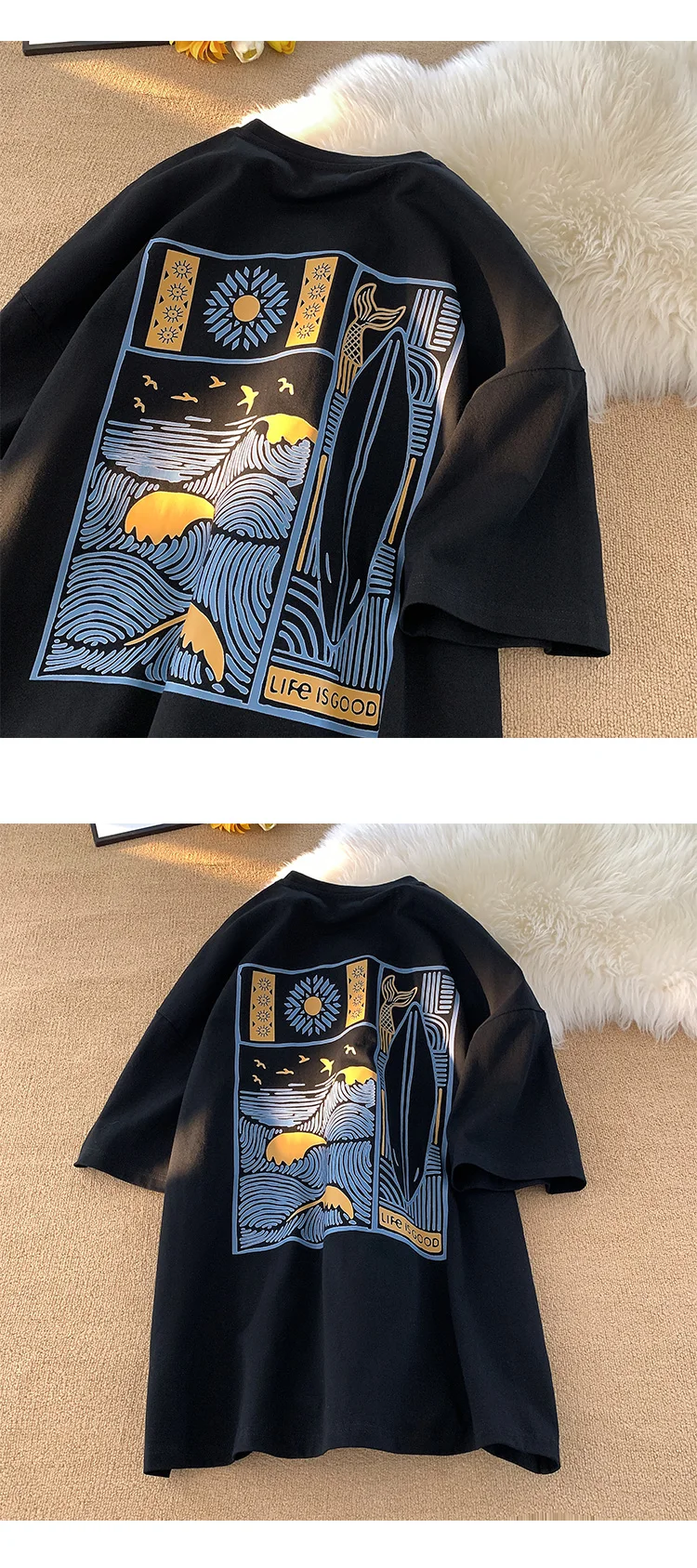 Fleepmart 100% Cotton Women T-shirts Summer New Short Sleeve Tees Sea Graphic Fashion Trendy Loose Unisex Tops Female ClothesFleepmart 100% Cotton Women T-shirts Summer New Short Sleeve Tees Sea Graphic Fashion Trendy Loose Unisex Tops Female Clothes