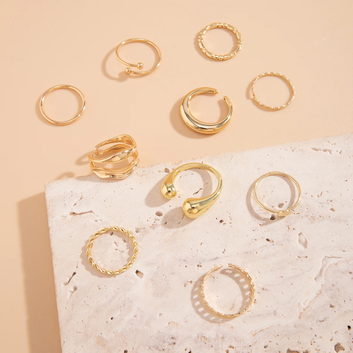 Fleepmart 10Pcs Bohemian Geometric Smooth Metal Wide Ring Fashion Opening Adjustable Ring Women’s Banquet Jewelry Gift Set