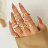 Fleepmart 10Pcs/Set Bohemian Geometric Metal Ring Set Women's Vintage Silver Plated Black Pearl Butterfly Finger Knuckle Ring Jewelry Gift