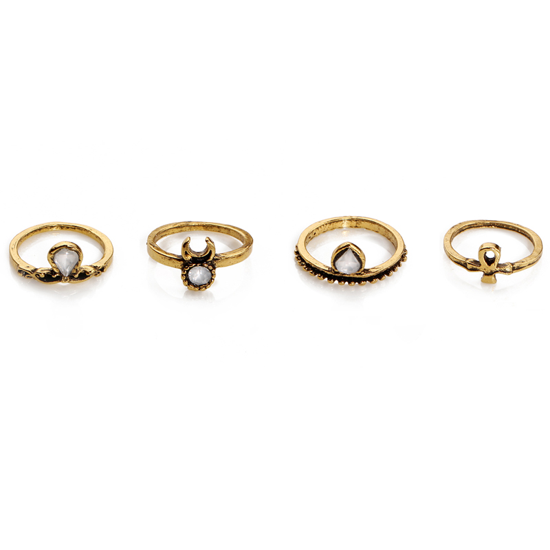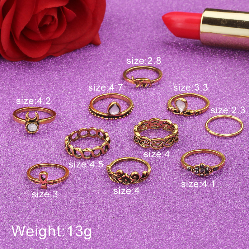 Fleepmart 10Pcs/set Bronze Plated Ring Set Heart Moon Starfish Charms Flower Eye Geometric Knuckle Finger Rings Crystal Women Fashion Ring