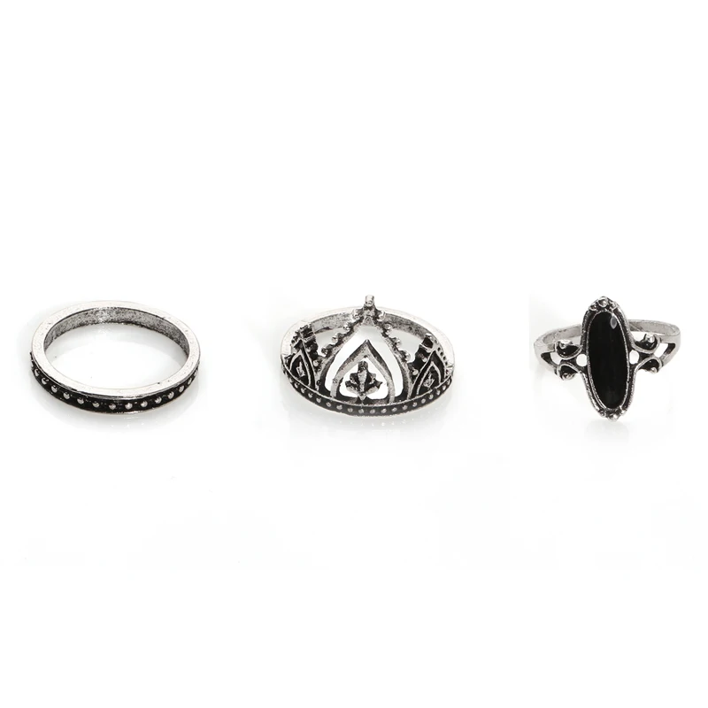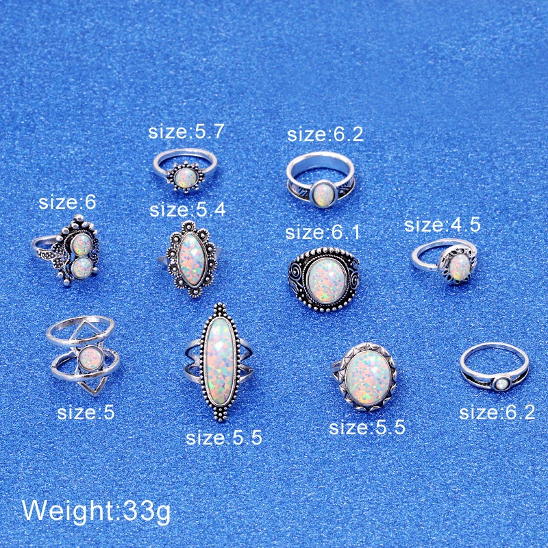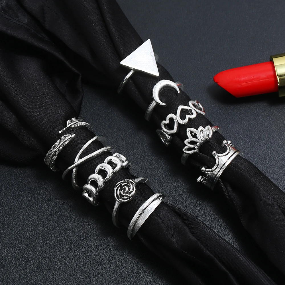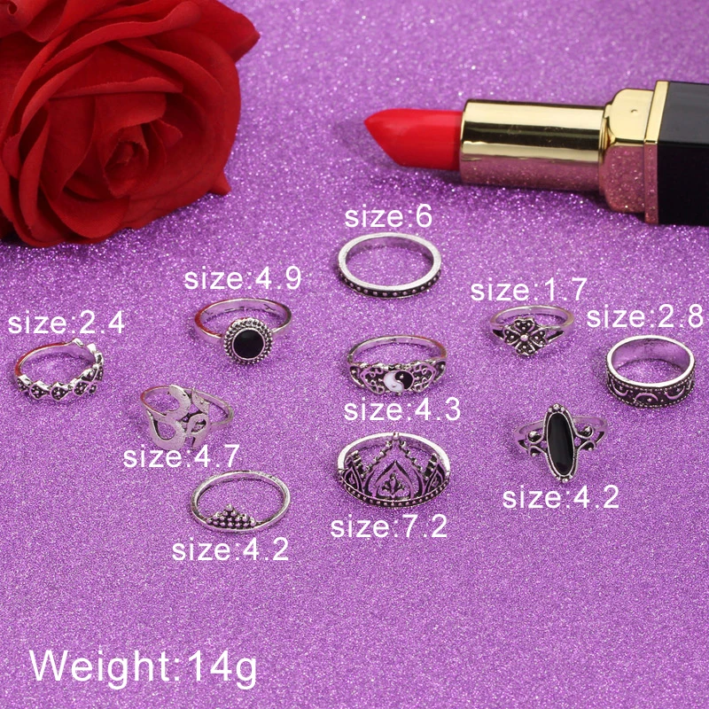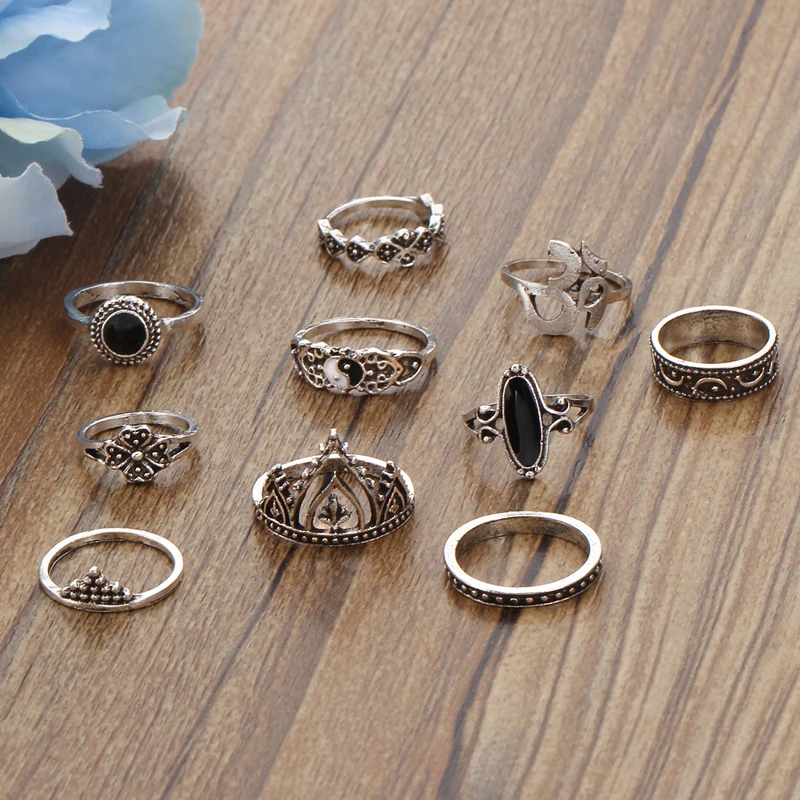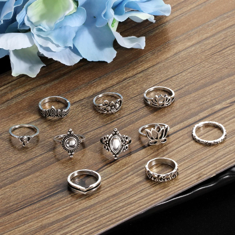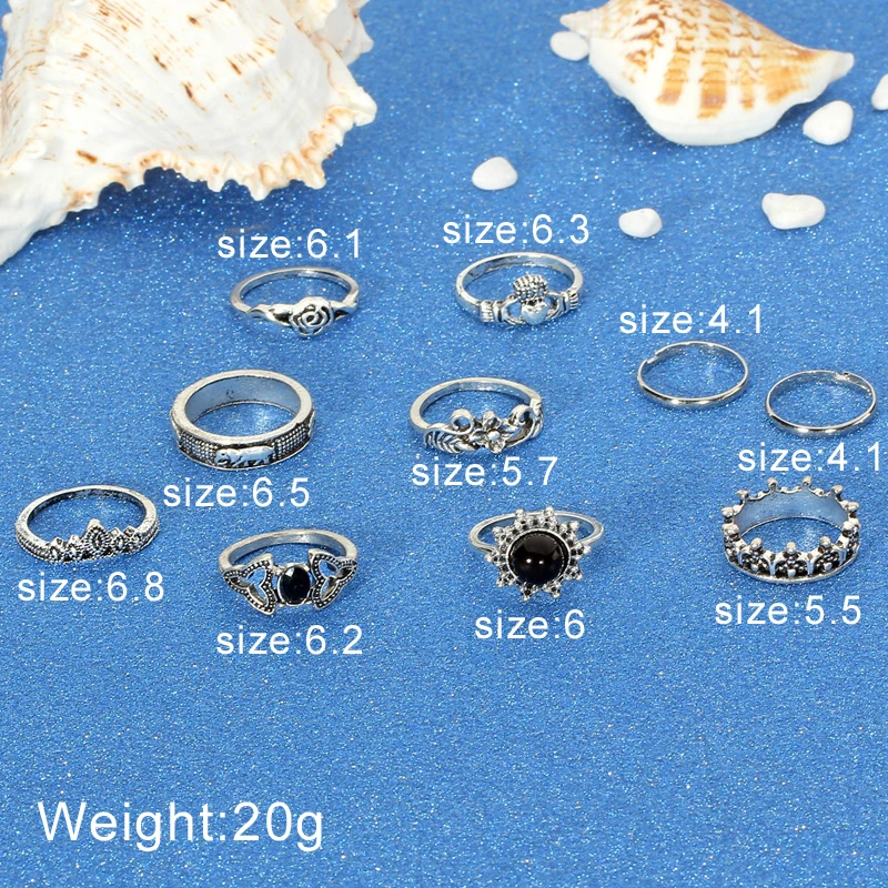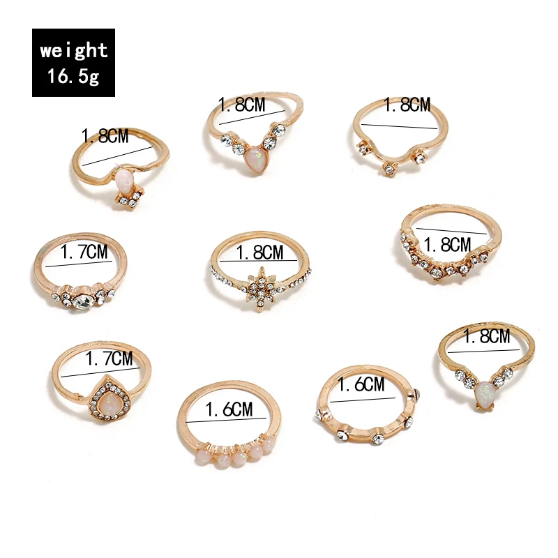 Fleepmart 10Pcs/set Bronze Plated Ring Set Heart Moon Starfish Charms Flower Eye Geometric Knuckle Finger Rings Crystal Women Fashion Ring