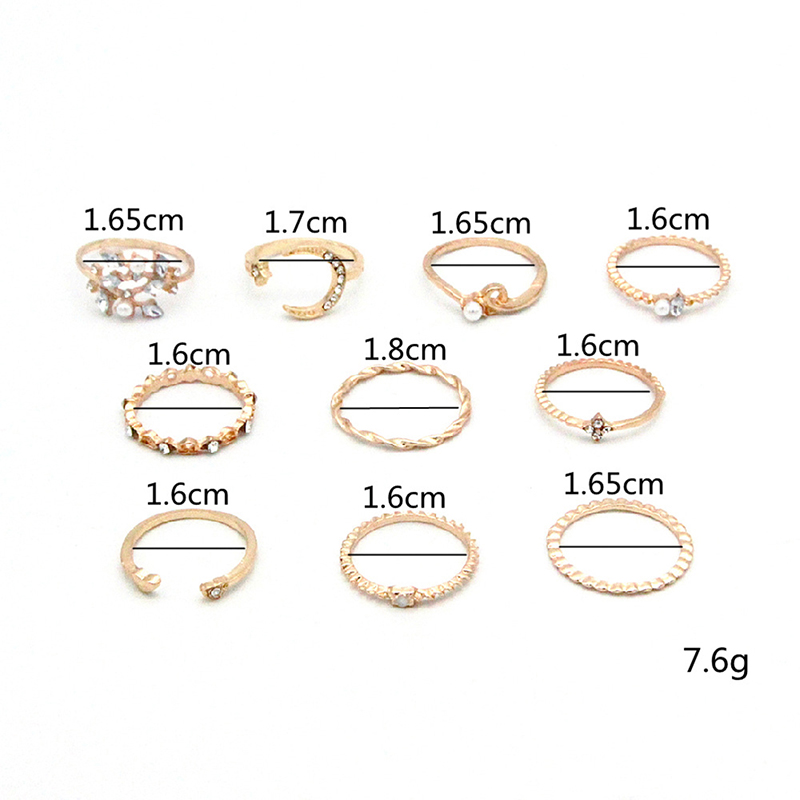 Fleepmart 10Pcs/set Moon Star Rings Women Girls Bohemian Jewellery Set Gifts Accessories