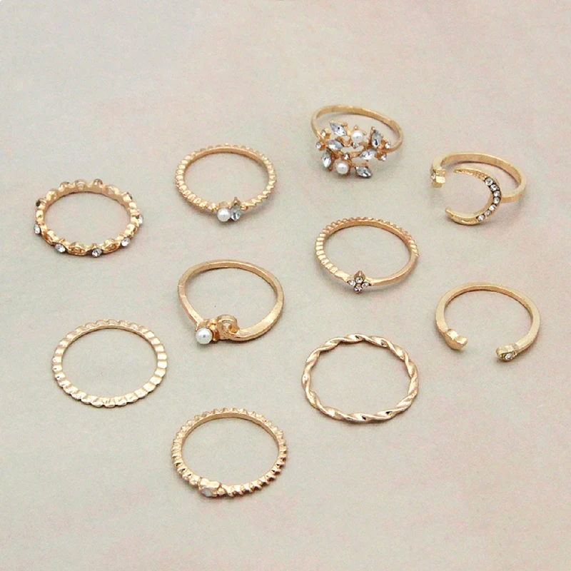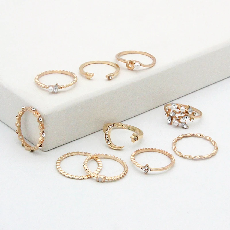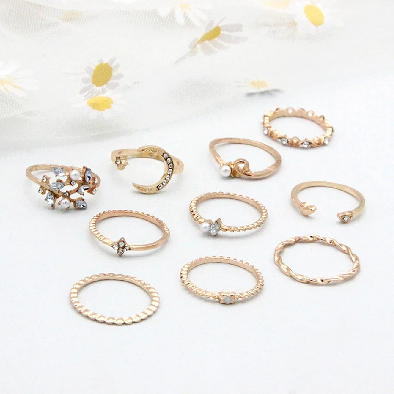 Fleepmart 10Pcs/set Moon Star Rings Women Girls Bohemian Jewellery Set Gifts Accessories
