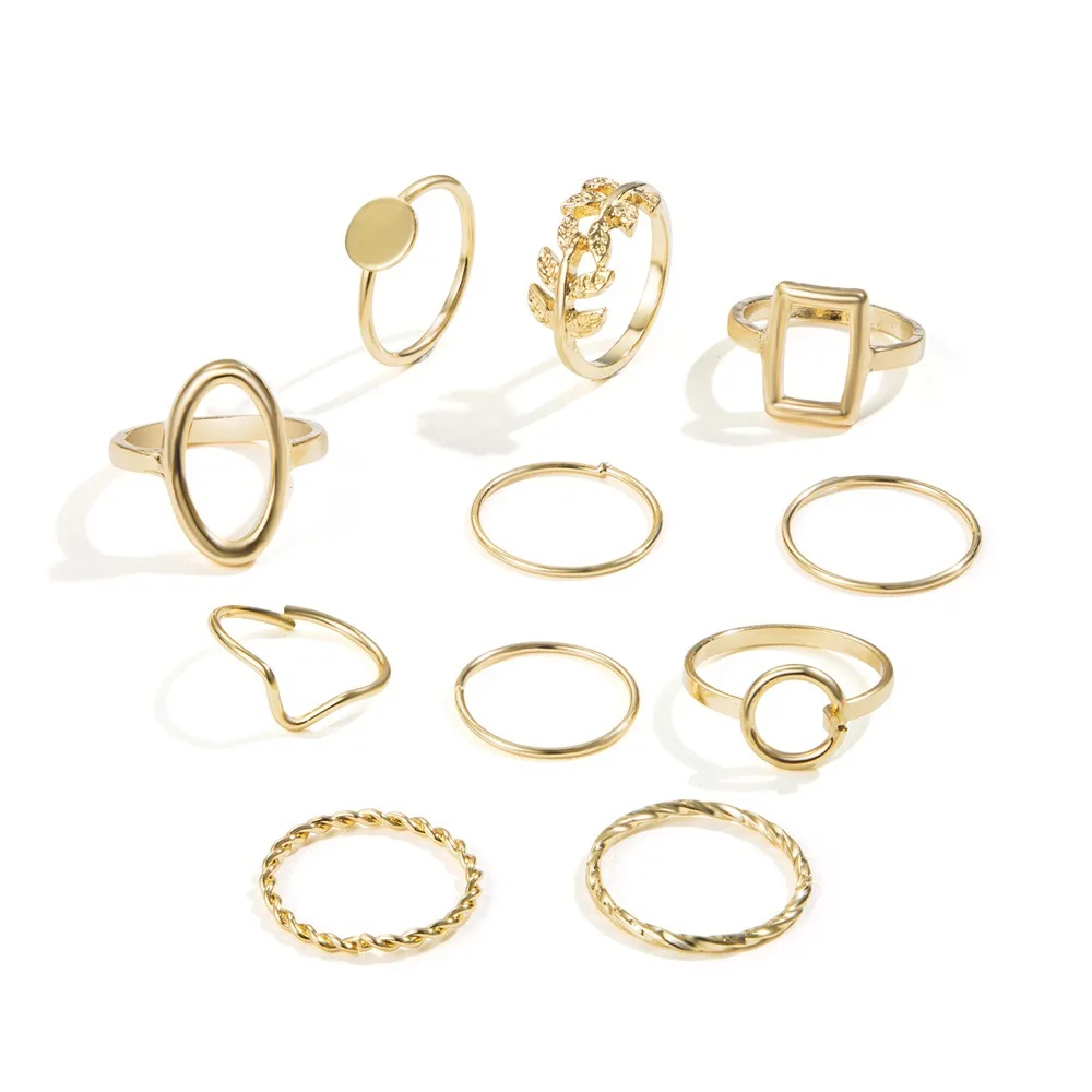 Fleepmart 11 Pcs/Set Olive Branch Leaf Rings Set for Women Combination Creative Joint Ring Fashion Party Jewelry Gift