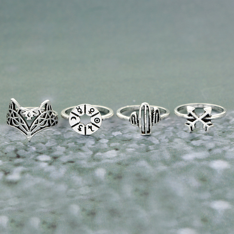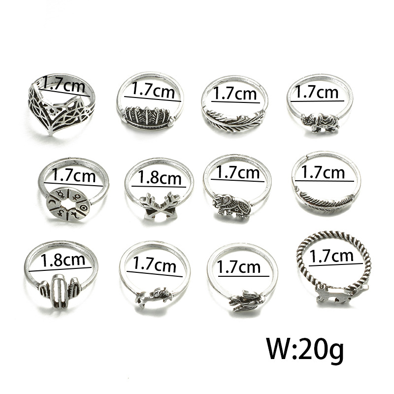 Fleepmart 12pcs/Set Bohemia Antique Silver Color Rings for Women Arrow Elephant Fox Lion Pony Pattern Animal Jewelry кольцо